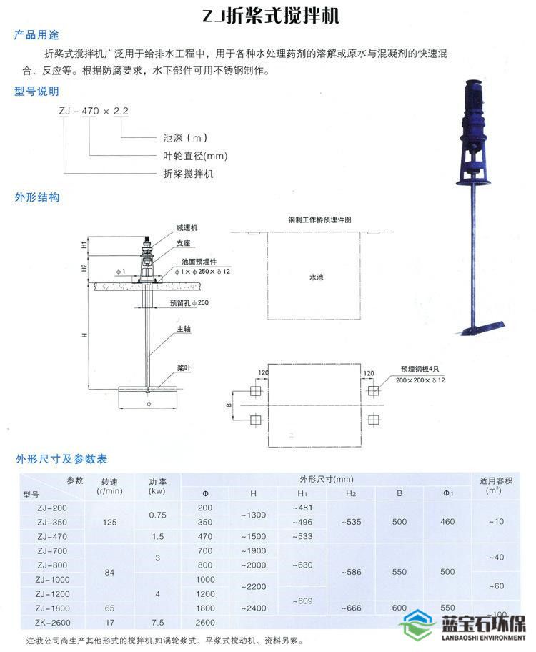 JBJ桨式搅拌机选型及安装方式型适用于给水和排水工程中的混合池、反应池与各种药剂的混合及反应过程的搅拌。